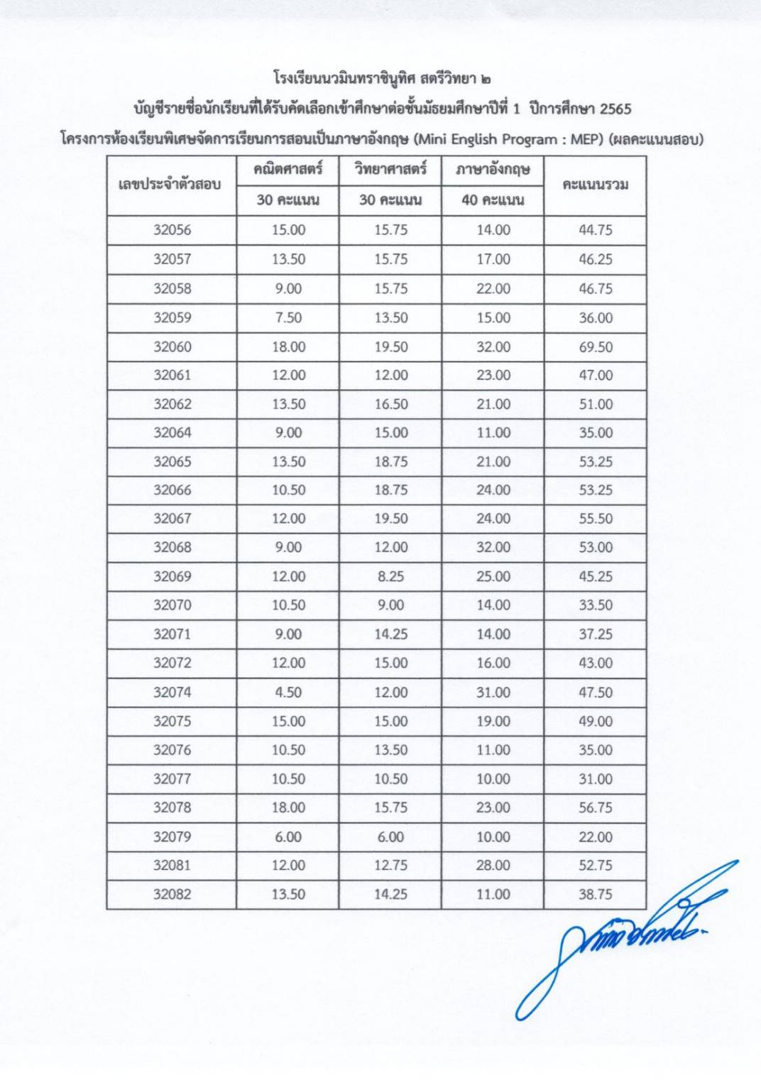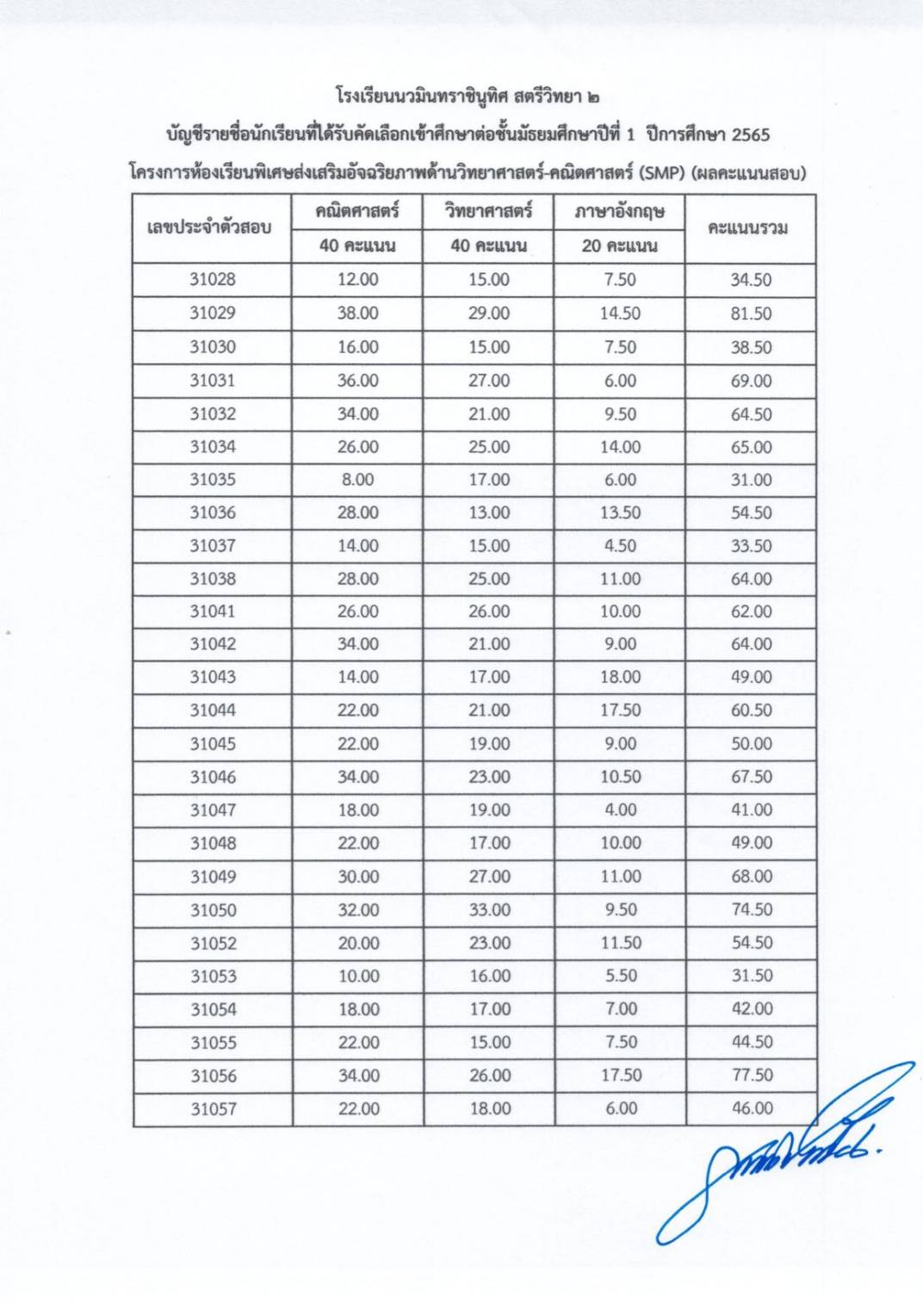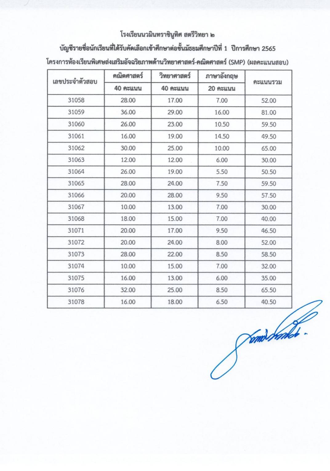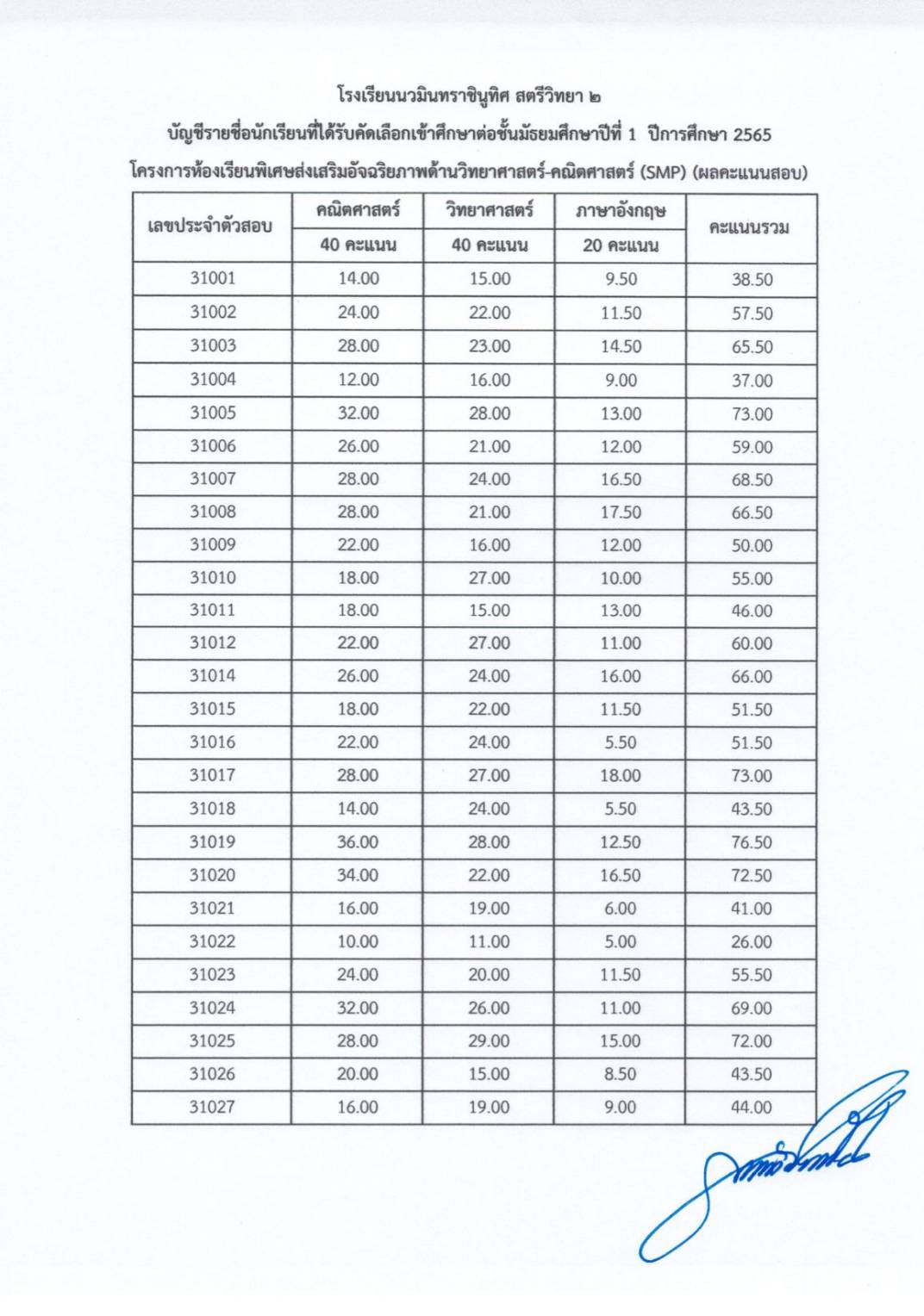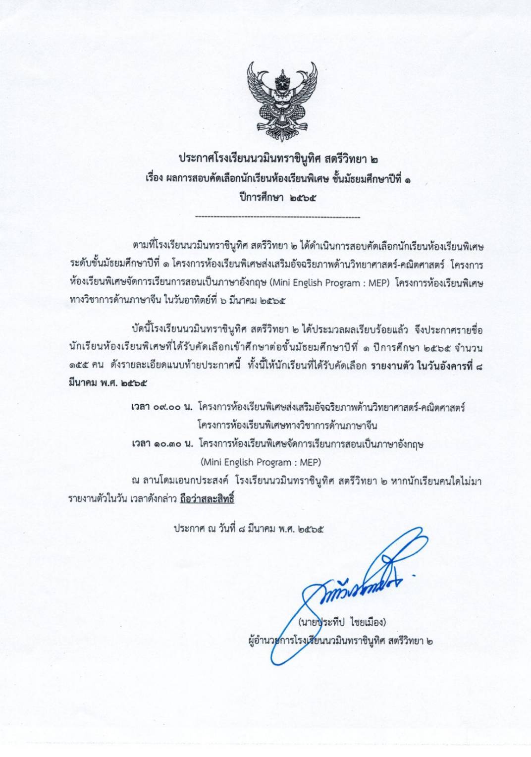 ประกาศผลการสอบห้องเรียนพิเศษ ชั้นมัธยมศึกษาปีที่ 1 ปีการศึกษา 2565