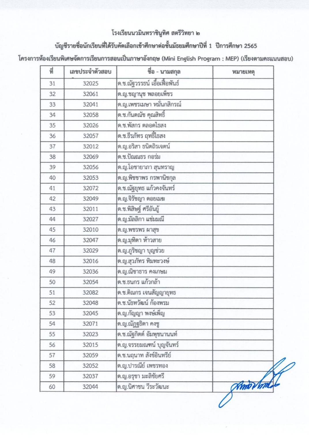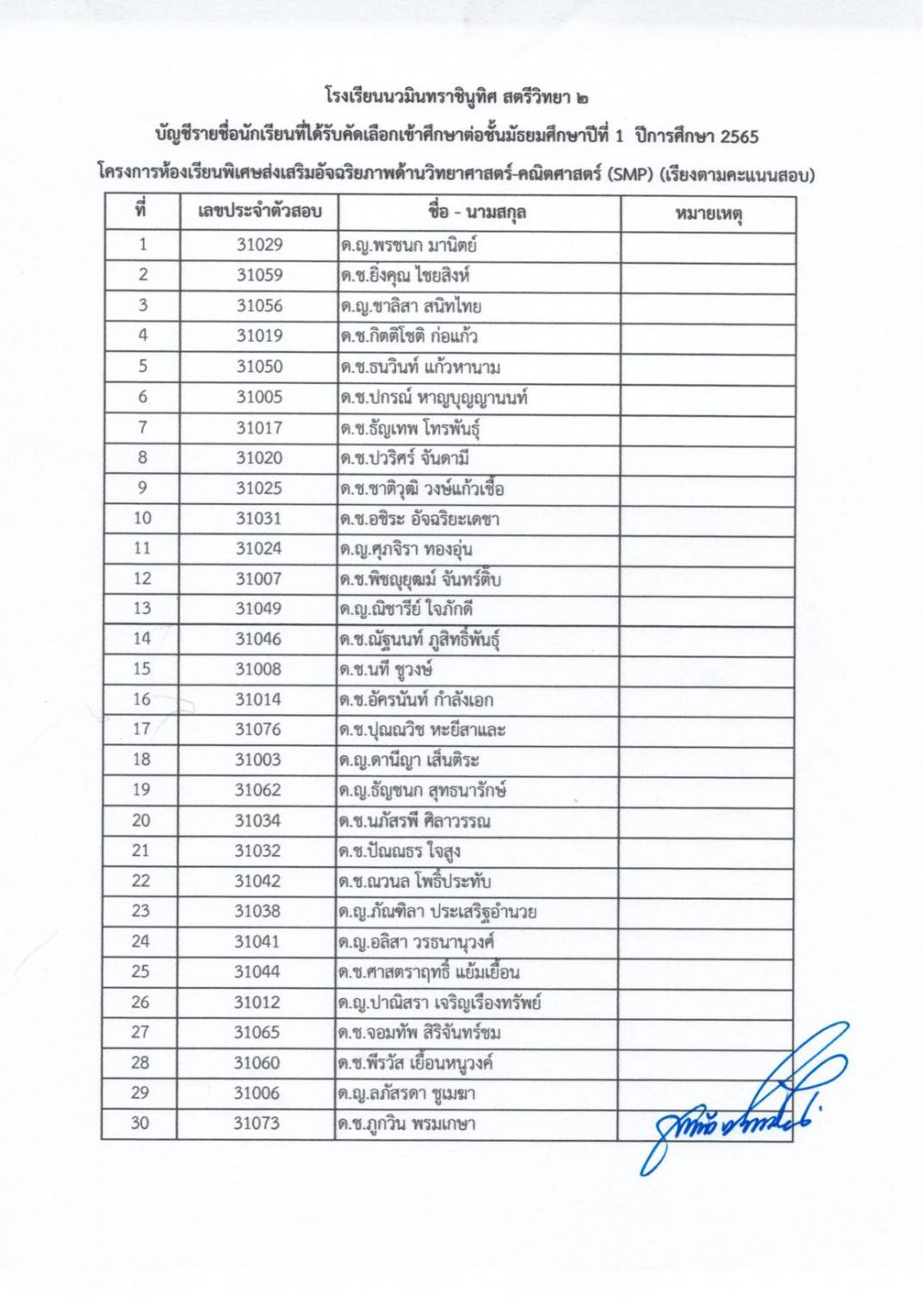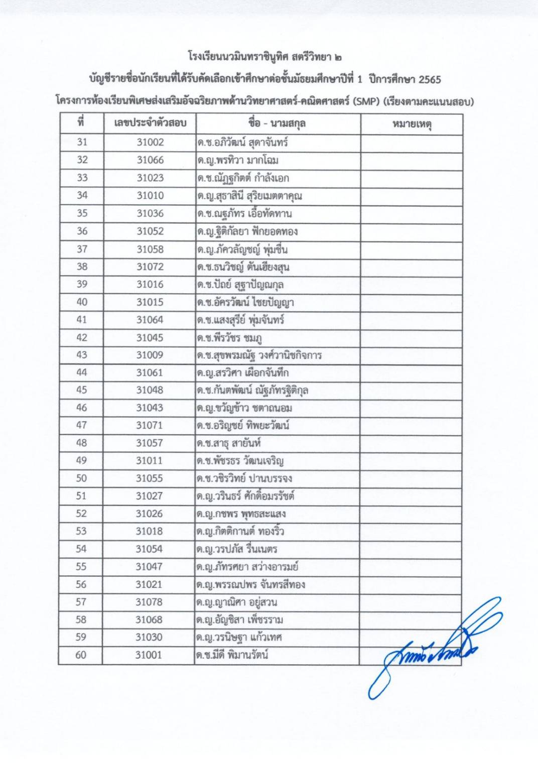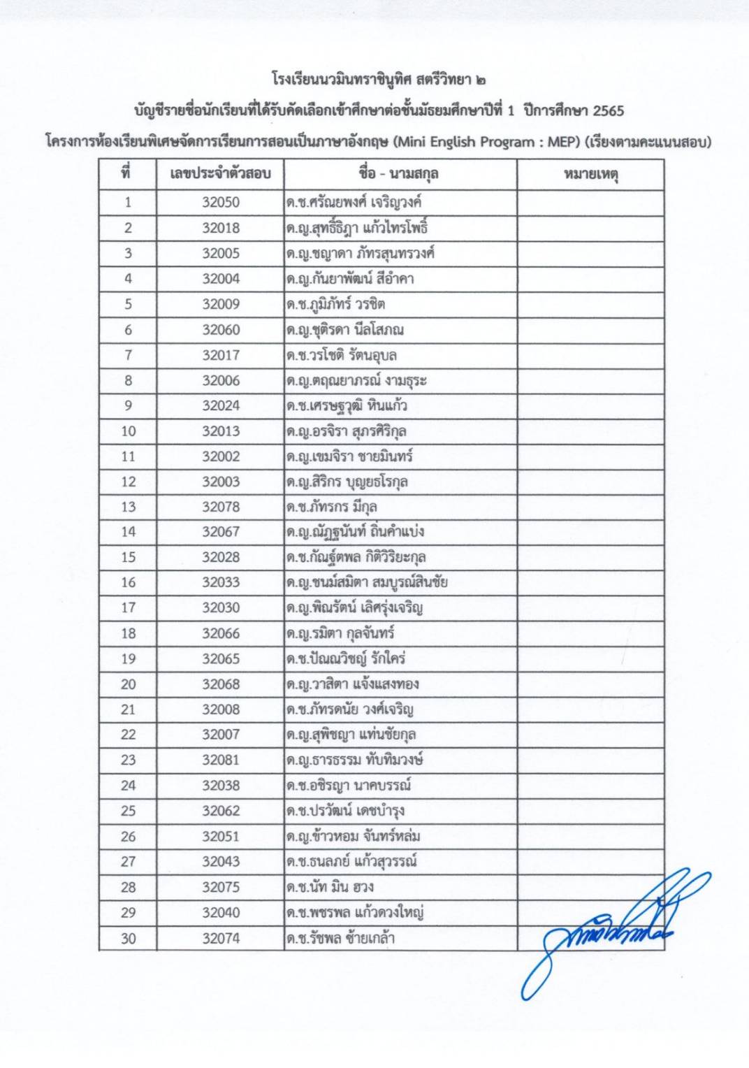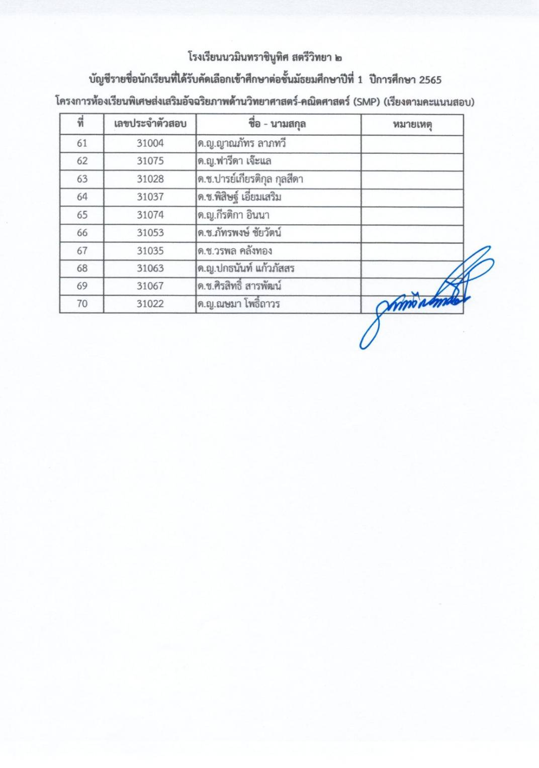 ประกาศผลการสอบห้องเรียนพิเศษ ชั้นมัธยมศึกษาปีที่ 1 ปีการศึกษา 2565